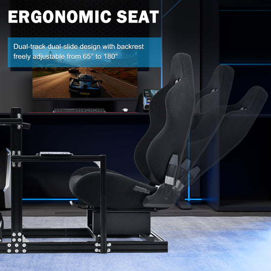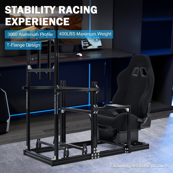 【Stable Structure】Racing stand is constructed from heavy-duty 3060 and 3030 aluminum profiles compliant with European standards.the overall structure is stable and can withstand the impact of intense driving