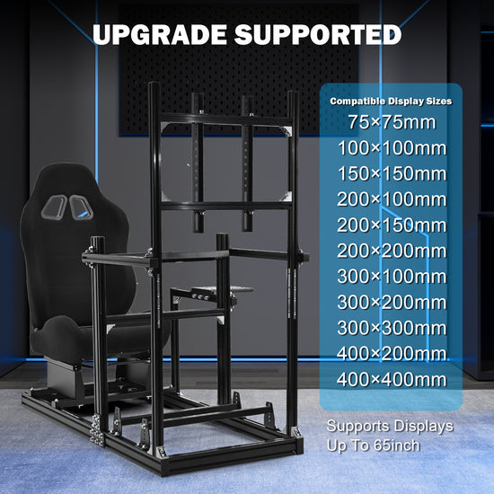 【Monitor Mount】Mount height can be freely adjusted,Compatible with single monitors from 27 to 65 inches. Securely attaches to main frame for enhanced stability