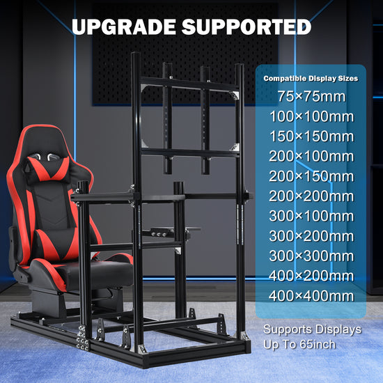 【Monitor Mount】Mount height can be freely adjusted,Compatible with single monitors from 27 to 65 inches. Securely attaches to main frame for enhanced stability