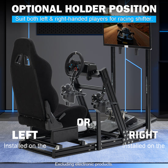 - 【Monitor Stand】The monitor stand is engineered for an immersive racing experience. It firmly supports 65-inch large-screen monitors, with fully adjustable height