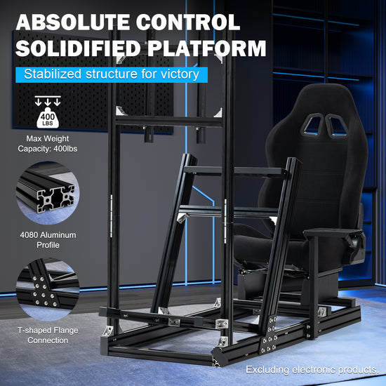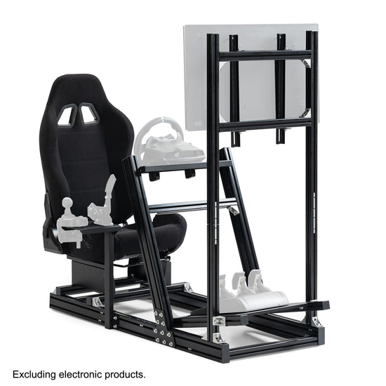 Anman 8040 Aluminum Profile Racing Sim Cockpit with Black Seat Monitor Mount,F1 Trunk Simulator,Fit for Moza/Logitech/Fanatec/Thrustmaster,Professional-Grade,No TV,Steering Wheel,Handbrake,Pedals