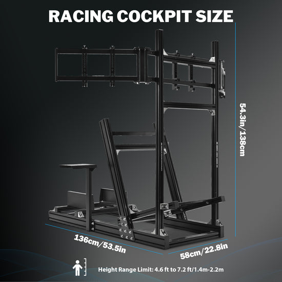 - 【Triple Screen Monitor Stand】The triple monitor stand is engineered for an immersive racing experience. It firmly supports three displays from 24 to 32 inches, with fully adjustable height and tilt angles.
