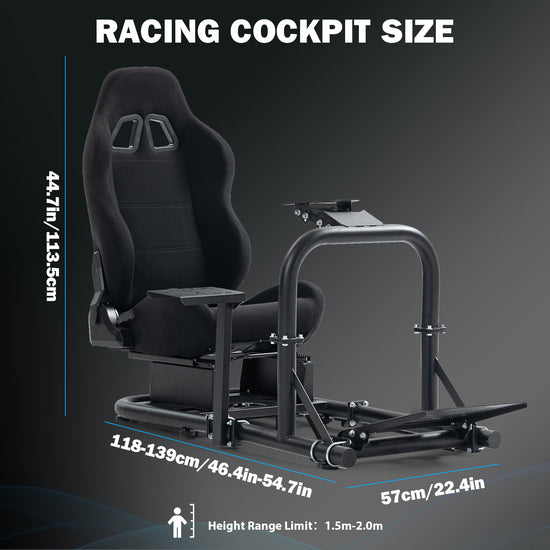 Anman Racing Simulator Cockpit Frame with Black Seat Fits for Logitech G29 G920/Thrustmaster/Fanatec,Adjustable Gaming Wheel Stand,Not Included Wheel, Pedal,Handbrake
