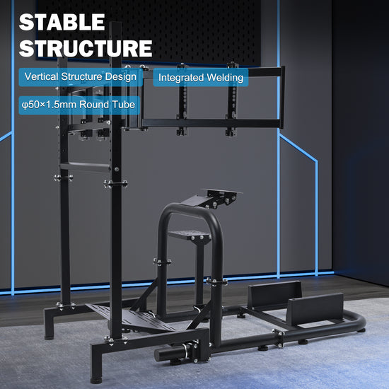 【Monitor Stand with Broader Perspective】Supports three 27"/32" monitors for panoramic views. Build your ultimate immersive racing environment. Easily adjust screen angles and height to achieve the perfect driving posture
