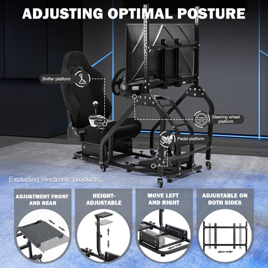 【Special Note】 This racing simulator cockpit only includes the stand, black seat and TV mount, the rest of the electronics need to be purchased separately