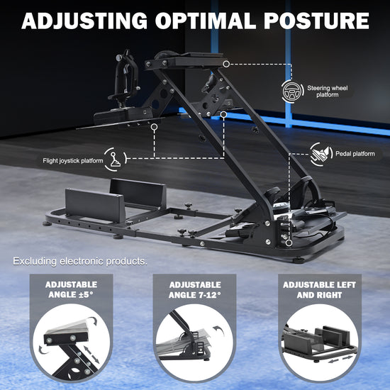 - 【DIY Adjustment】This racing cockpit supports customized flight experience, adjustable flying wheel stand height: 22.5in-30in, angle: ±5°, adjustable pedal mount angle: 8-18°
