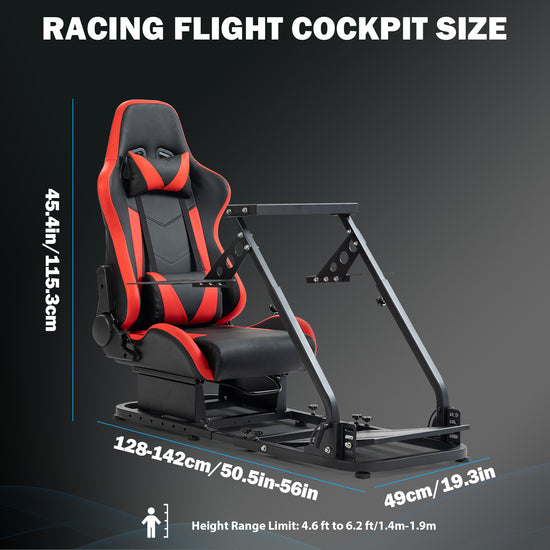 - 【DIY Adjustment】This racing cockpit supports customized flight experience, adjustable flying wheel stand height: 26.8in-33.9in, angle: ±5°, adjustable pedal mount angle: 7-12°